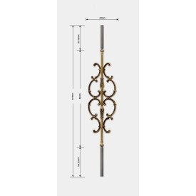 BARREAU LAITON PATINÉ VERNIS AVEC EXTRÉMITÉS ACIER – 1070 MM, SECTION 16 MM