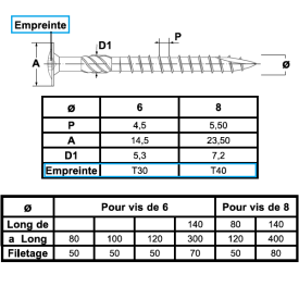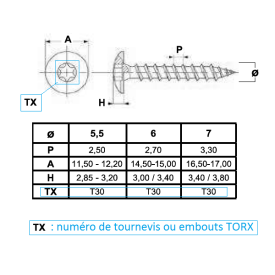 • Empreinte Torx 6 lobes pour un vissage puissant et sans ripage