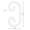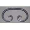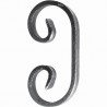 La volute est conçue en fer plat laminé à chaud, de section 12x6 mm. Elle mesure 110 mm de longueur pour 55 mm de hauteur, offrant un format compact et raffiné, idéal pour les compositions symétriques ou en miroir.